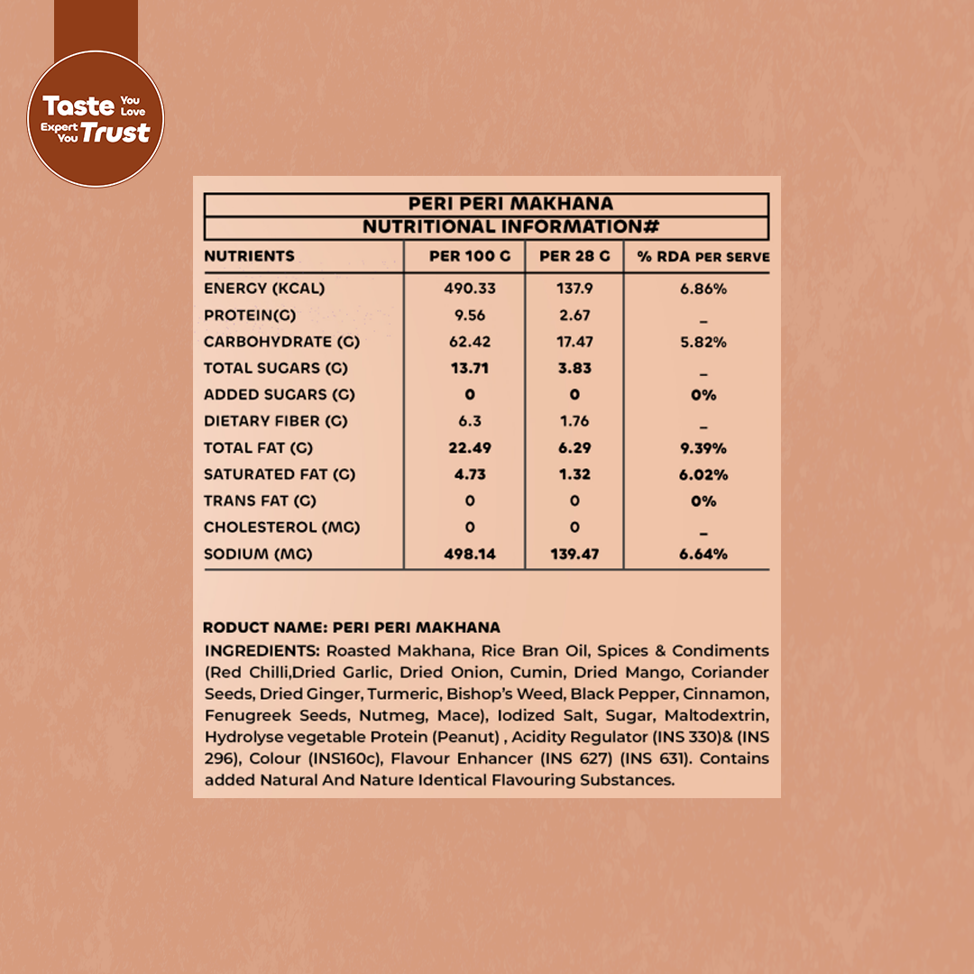 Light, crispy and tasty flavoured makhana roasted to perfection, coated with delicious spices, offering a low-calorie guilt-free crunch, crafted with natural ingredients, and delivering the perfect blend of taste, health and smart snacking.