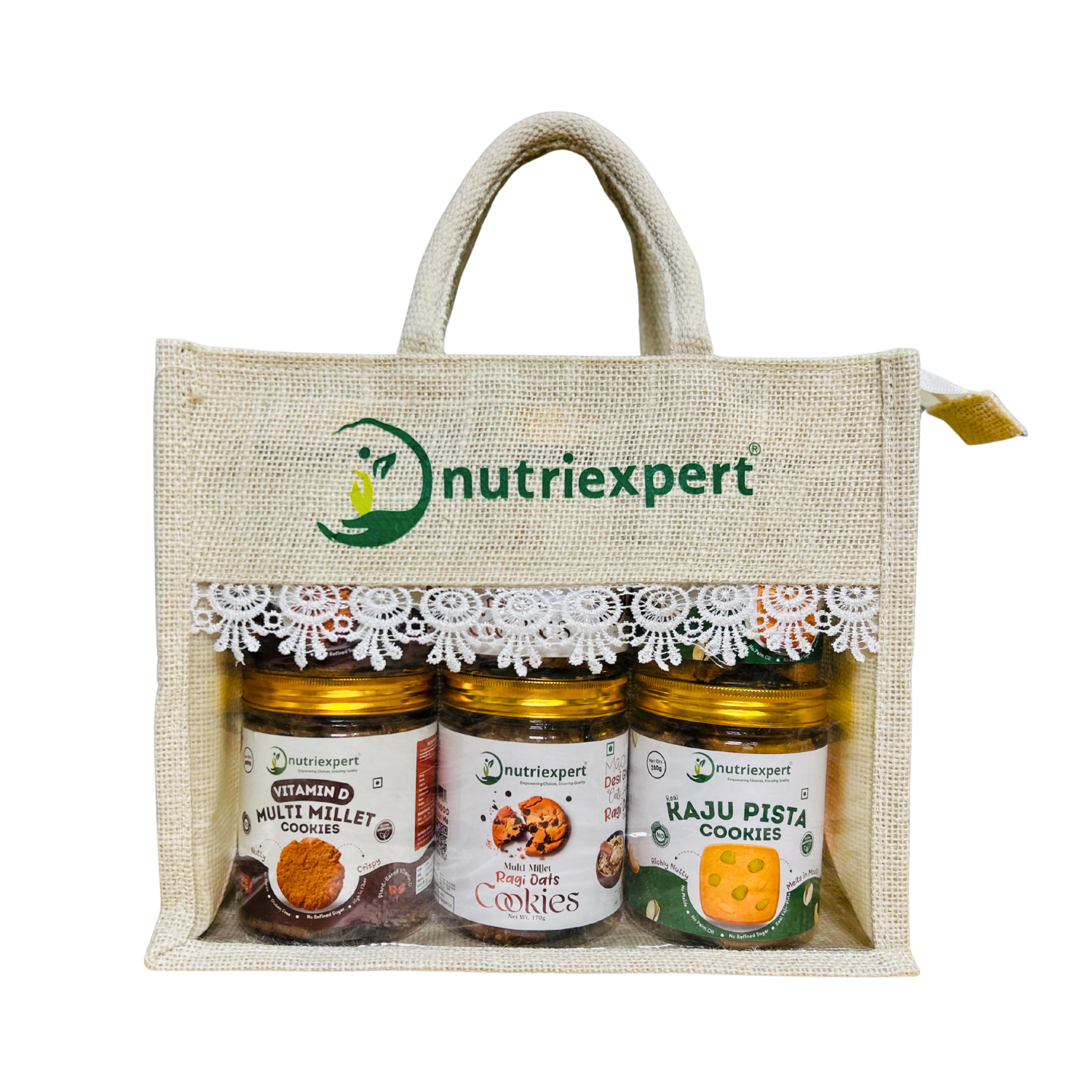 Enjoy the goodness of clean, handcrafted cookies with the NutriExpert Grand Cookie Gift Pack – a premium assortment of 6 jars made with pure Desi Ghee.